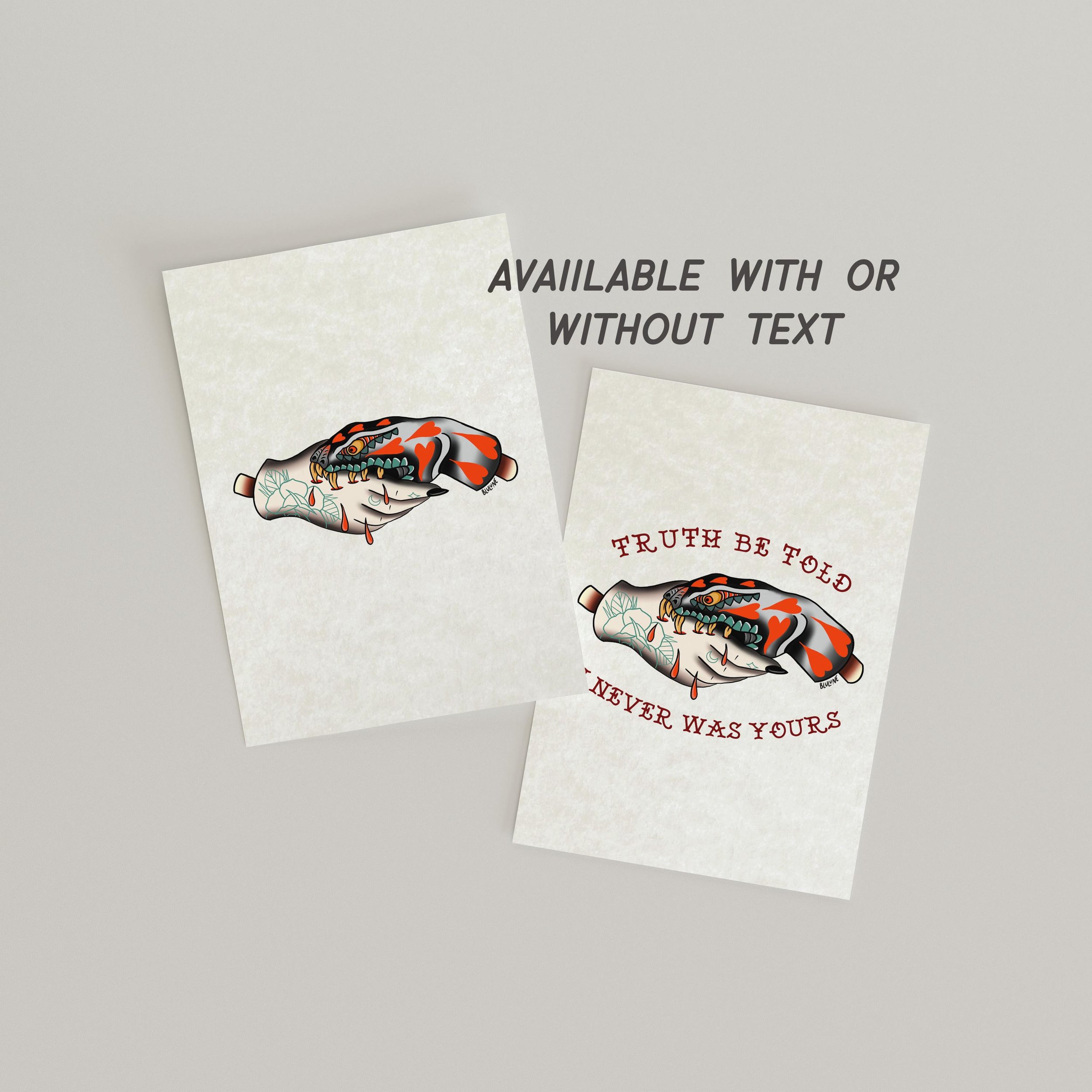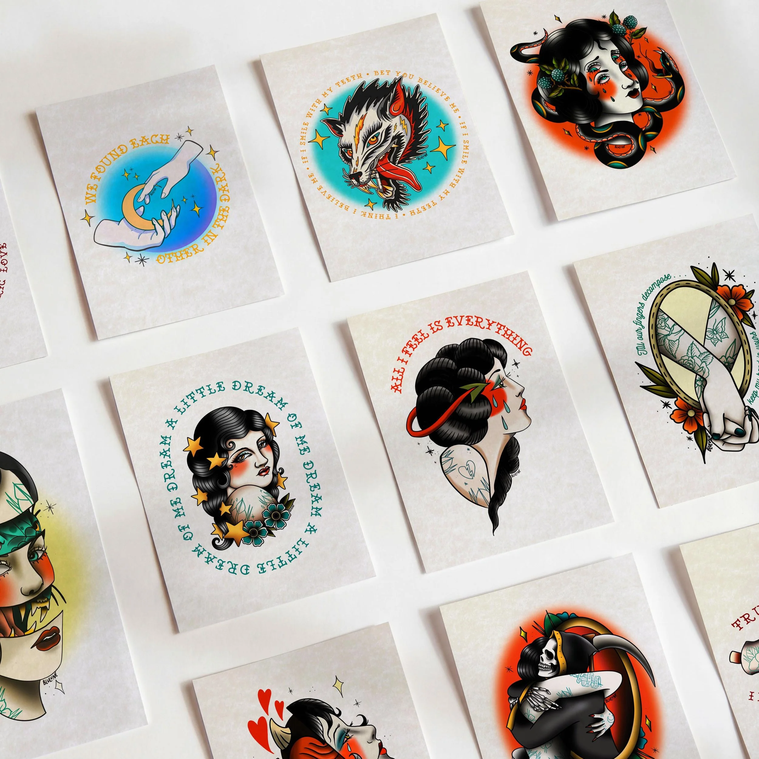Shop Clear All | PRINTS | JEWELRY | APPAREL | PORTRAITS & CUSTOMS | Filters Categories All PRINTS JEWELRY APPAREL PORTRAITS & CUSTOMS Filter Clear Filter Skeleton Hand Rose Tattoo Art Print - American Traditional from $19.99 Tattooed Hand Shadow Puppet Art Print - American Traditional from $19.99 The Lovers Tarot Card Print – American Traditional Tattoo Art from $19.99 Birth Flower Tattoo Art Print – American Traditional Style from $19.99 Girl and Moon Tattoo - Sweet Dreams - American Traditional Tattoo Art from $19.99 Bluey Inspired Pet Portrait, Dog or Cat (Custom Hand Drawn from Photo) from $54.99 Custom Pet Portrait, Minimalist Style (Dog or Cat Drawing) from $54.99 Tattoo Style Pet Portrait, Digital Art (Custom Cat, Dog Illustration) $39.99 Lady Tattoo Art Print – Stars in Hair, American Traditional from $19.99 Custom Song Lyric Print, Minimalist Style (Personalized Artwork) from $54.99 Medusa Tattoo Art Print – American Traditional Snakes from $19.99 Custom Pet Portrait: Neo Traditional Style - Hand Drawn from Photos from $54.99 Split Face Woman Tattoo Art Print - American Traditional from $19.99 American Traditional Tattoo Art Print – Woman, Smoke & Fire from $19.99 Split Face Tattoo Art Print – Woman Demon, American Traditional from $19.99 Hands & Moon Romantic Tattoo Art - City and Colour Inspired from $19.99 Zodiac Sign Minimalist Art Print from $19.99 Snake Biting Hand Tattoo Art Print - American Traditional from $19.99 American Traditional Tattoo Art Print - Devil Emo Man from $19.99 Panther Tattoo Art Print – Traditional Cat Tattoo with Lightning from $19.99 Crying Woman Tattoo Art Print - American Traditional Heartbreak from $19.99 All I Feel is Everything Tattoo Art - Woman Crying Tattoo - Devil Tattoo - American Traditional Tattoo Art from $19.99 Custom Pet Portrait - Tattoo Style Dog, Cat, or Any Animal from $54.99 American Traditional Tattoo Art Print - Hand Holding Match from $19.99 Wolf in Sheep's Clothing Tattoo Art Print - American Traditional from $19.99 Romantic Hidden Message Sliding Bar Necklace - Engraved - From This Life Until the Next $74.99 Antique Child Portrait Cameo - Custom Hand Drawn Illustration from $44.99 Custom Traditional Tattoo Art Print - Hearts, Banner & Leaf Details from $39.99 BLULUNE Crewneck Sweatshirt - Support Local Artists $54.99 Engraved Necklace - Do No Harm $44.99 Tattoo Style Unisex Stonewash Tank Top - Last Hope $54.99 Grim Reaper Tattoo Art Print - American Traditional Design from $19.99 Animal Crossing Couple Portrait: Custom Villager Illustration from $54.99 Engraved Heart Necklace - Do No Harm - Paperclip Heart Necklace $54.99 Crybaby Vertical Bar Necklace | Engraved Necklace Pendant $54.99 No results found No results match your search. Try removing a few filters.